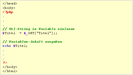 Ausgeben der Variable $Titel in der Datei ausgabe.php |
